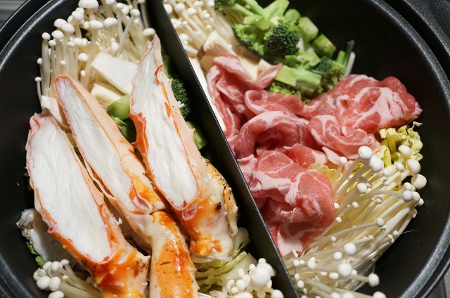 カニと豚肉の鍋を同時に楽しめちゃう!