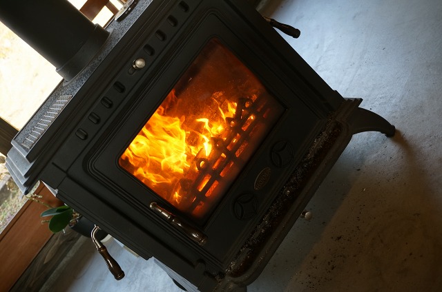 座敷とテーブル席があるのですが、土間になった部分にはレトロな薪ストーブがありました。