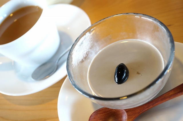 黒豆のプリンかな?プルプル甘くて、コーヒーによく合います。