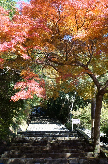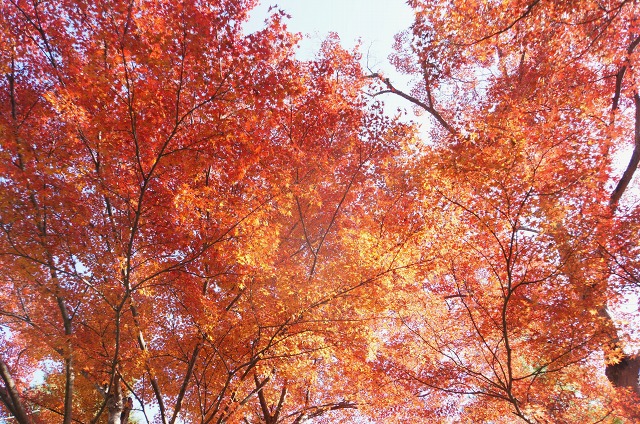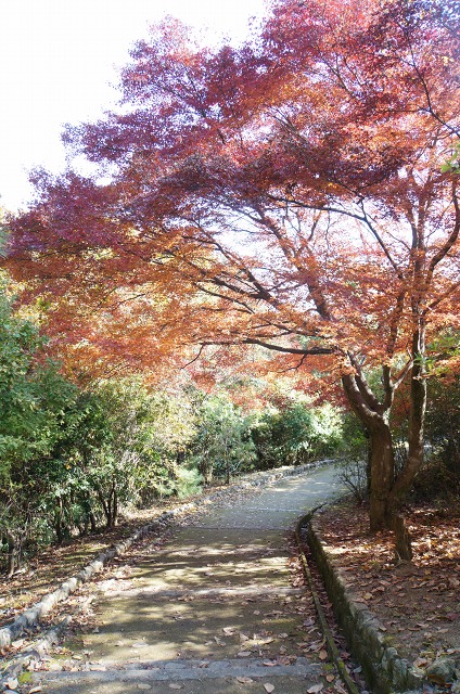 上り坂で、日頃運動していない私にはキツいんですが、この真っ赤なモミジが「頑張れ」と励ましてくれているように感じます。