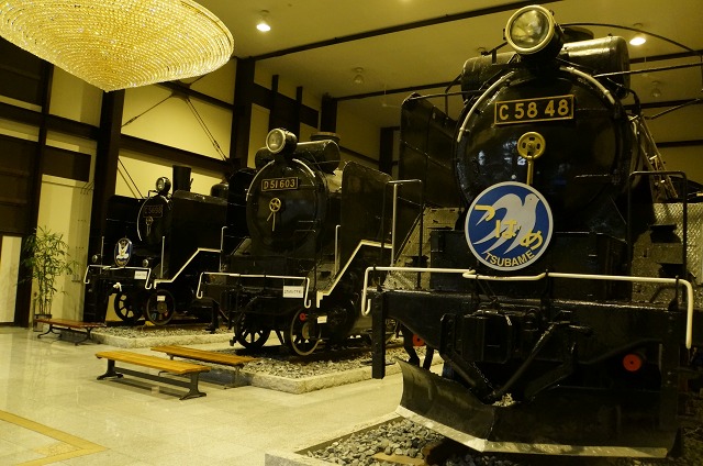 奥には機関車が展示してあるところがあって、カフェもありました。
