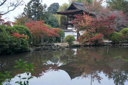 池に映る紅葉がより景色を華やかにしてくれますね。