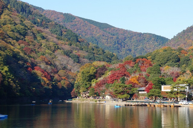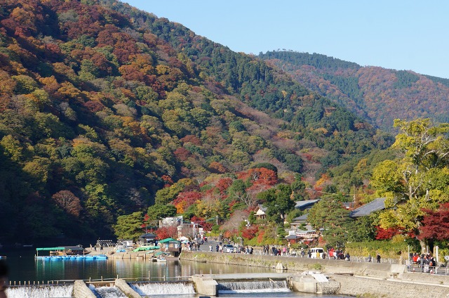嵐山には紅葉の綺麗なお寺がいっぱいありますけど、お散歩がてらのんびり歩けばお金を払わずとも美しい景色を楽しめます。