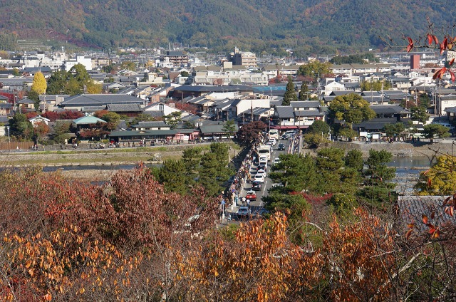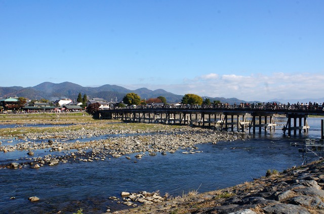 JR嵯峨嵐山駅から渡月橋に向かったんですが、朝9時で人がいっぱい。