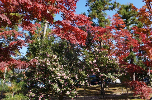 色がイマイチ綺麗に出なかったけど、山茶花と紅葉のコラボ。