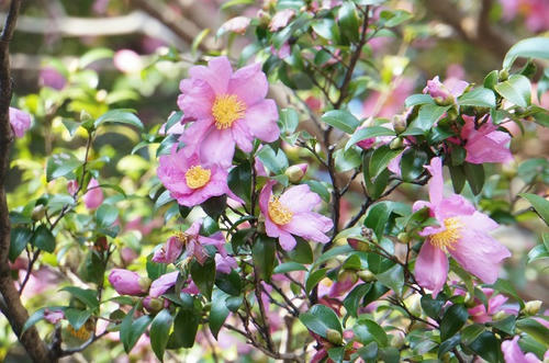 椿に似てるな~と思ってたんですが、帰ってから調べるとやっぱりツバキ科のお花だったんですね。