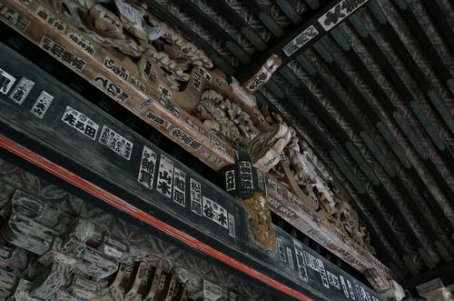 この建物には、所狭しと千社札が貼られてます。