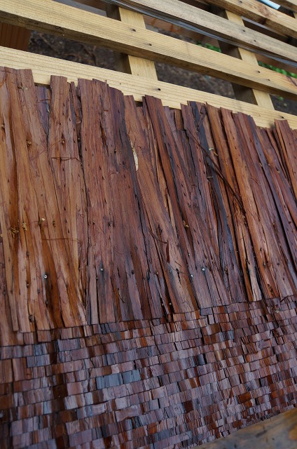檜皮の張替え中ですね。