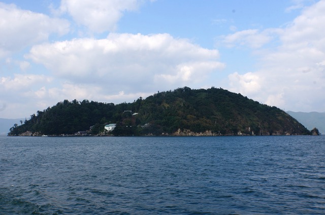 楽しいクルージングを経て、見えてきました竹生島!
