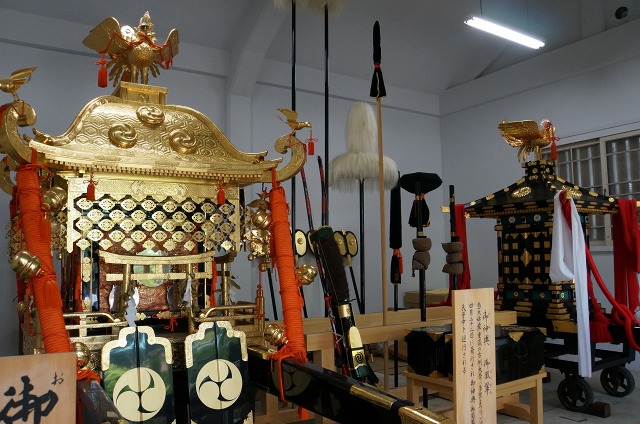 神輿庫には春に行われる古例大祭(多賀まつり)に登場するお神輿がありました。