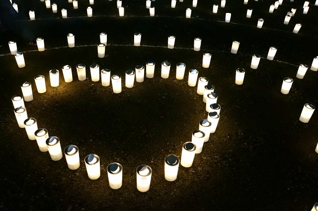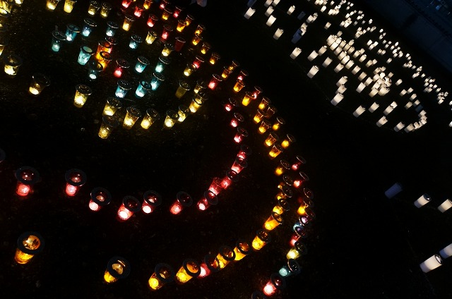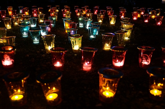 キャンドルの優しい光が色とりどり。
