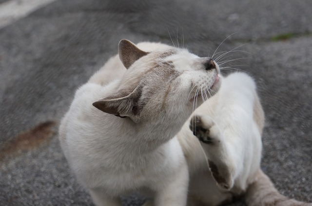 リラックスモード。このネコちゃんの目は青くて綺麗でした。