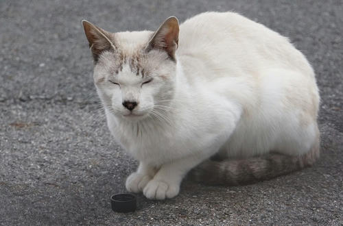 通りかかったおばぁさんが、「昨日は3匹いたのよー。違う猫ね。どっからくるのかしら?」って教えてくれました。