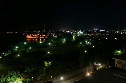 中央やや右寄りにライトアップされた長浜城が見えます。