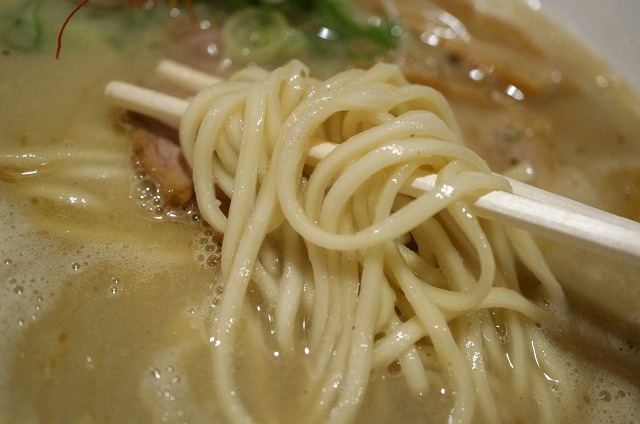 濃厚な鶏がらスープにからむのは、コシのある真っ直ぐな麺。