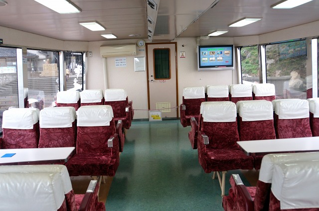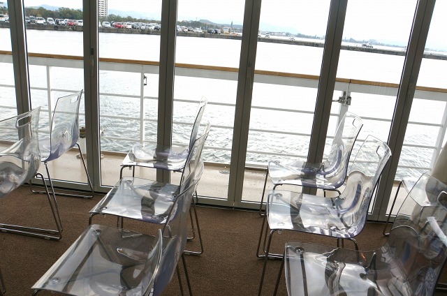 私はこの一番奥の席にしてみたんですが、クルージング中船内徘徊してたので、朝ご飯のパンをちょっと食べるぐらいの時間しか座ってなかったです(笑)