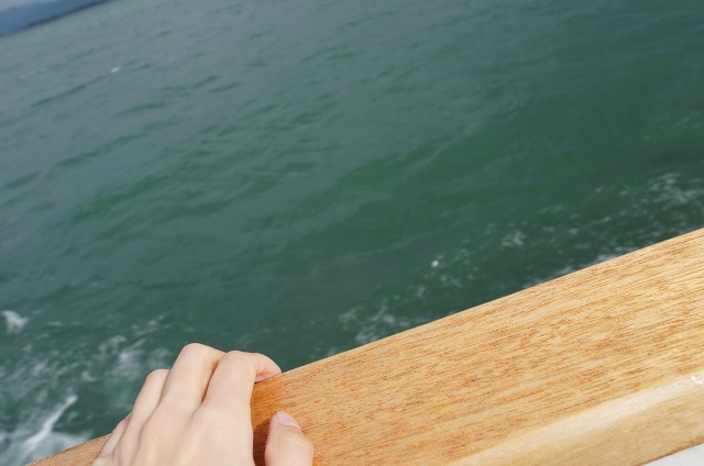 琵琶湖の水はエメラルドブルーでとても綺麗でした。