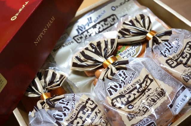 ニッポンハムのサイトで毎月プレゼントがあるのですが、根気よく毎月応募してたら届きましたよ!ハムならぬソーセージが!!!