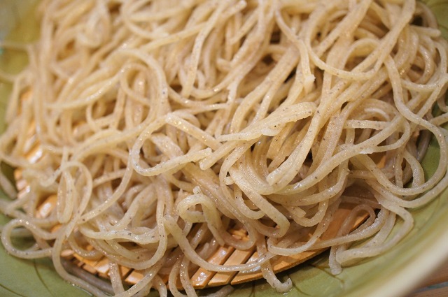 天ぷらを食べ終えたぐらいで、茹でたてのざるそばが登場です。