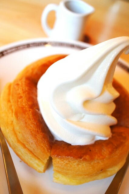 ほんのり甘いデニッシュパンの上にソフトクリームがのっかってます。