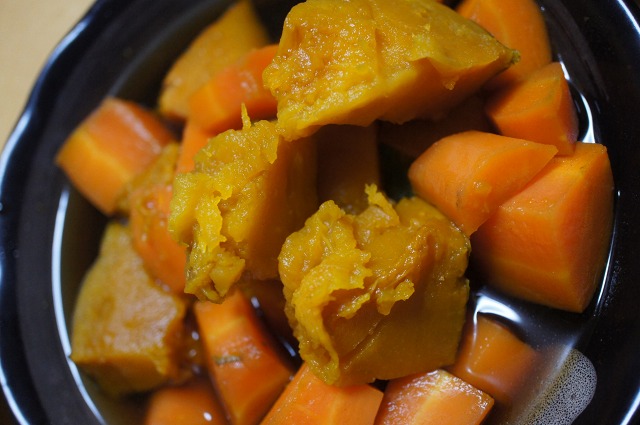 人参はイマイチだったけど、かぼちゃは美味しかったです。甘い味付けの煮物ってホッとしますよね。