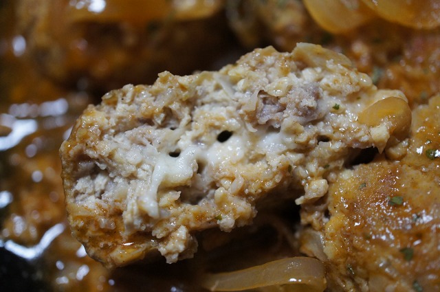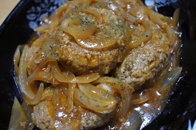 玉ねぎと一緒に煮込みハンバーグにしてみました。