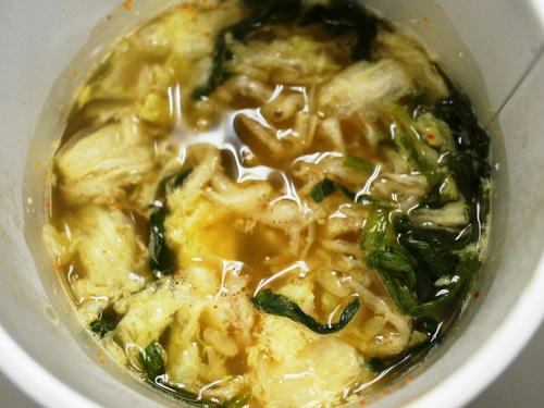 至って普通のカップヌードルじゃない?と思うのですが、具がチキン・たまご・コーン・黄ピーマンとなかなかヘルシー。
