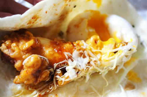 甘辛和風ダレに絡められたクリスピーと半熟卵が入ってます。