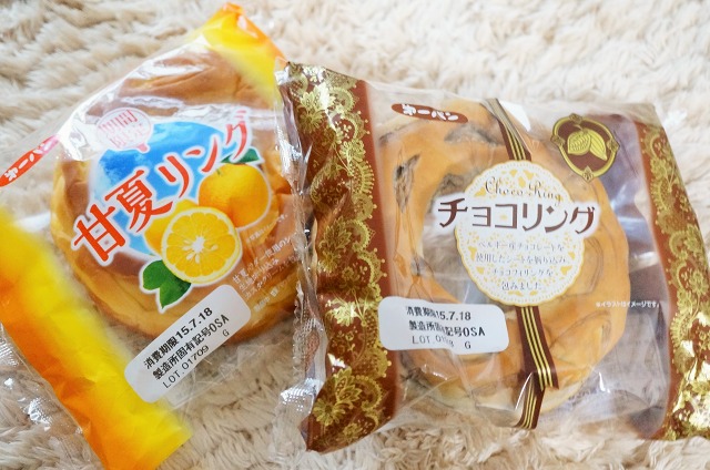 あんこのを良く買ってたけど、今回は期間限定の甘夏リングとチョコリングにしてみましたよ。