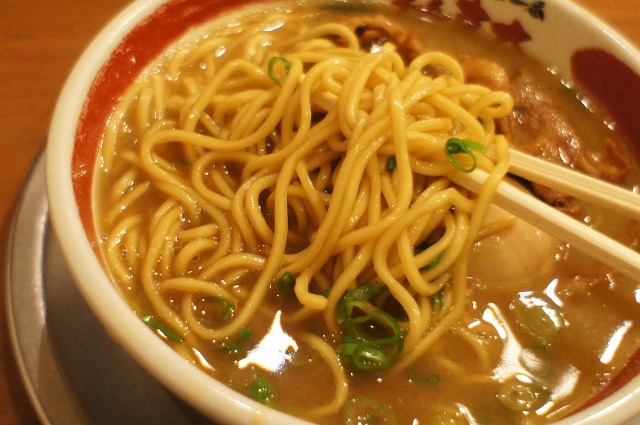 麺は細麺でややこってりしたスープによく絡みます。
