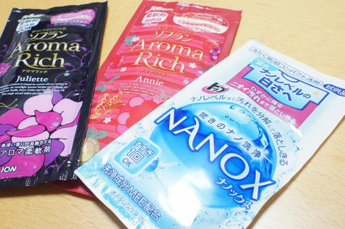 キャンペーンで当たった洗剤と柔軟剤のサンプル。