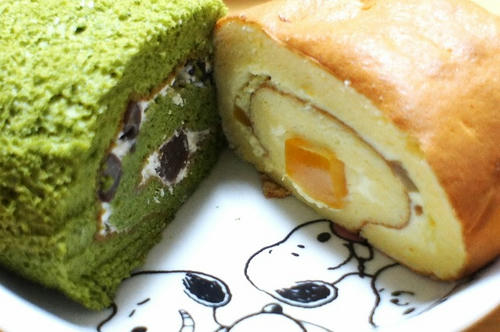 タイムセールで買ってきてくれた堂島ロールのマンゴーと抹茶。