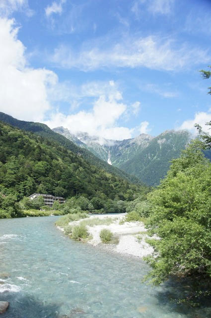 梓川を逆行するように山を登って行きます。