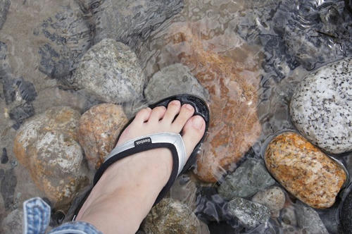 サンダルだったので、そのまま水の中に入って遊んでました。