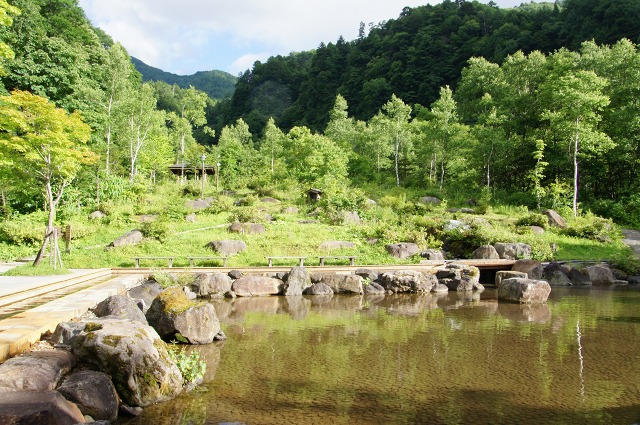 温泉と川の水を混ぜて良い温度になってます。