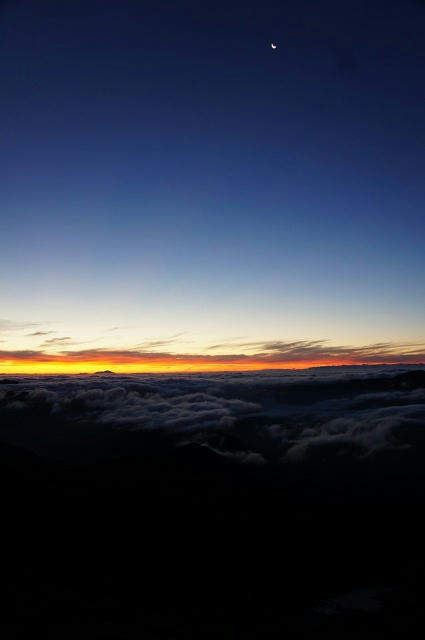 辺りはまだ、空には月があります。(写真の上の方に小さく光っているのが月)