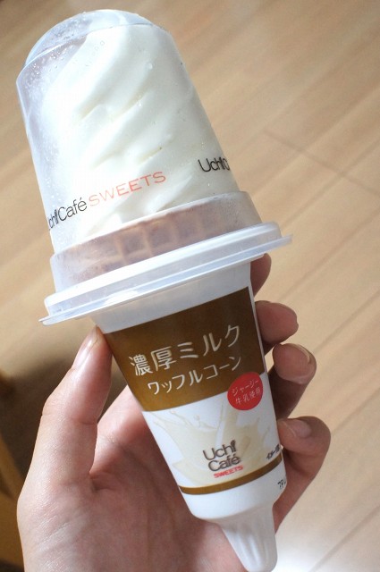 以前、ウチカフェぎゅっとミルクを食べて美味しかったので、ワッフルコーンを試してみることに。