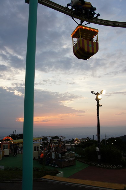 お子様むけの、可愛いケーブルカーに乗って、生駒山上遊園地に行ってきました。