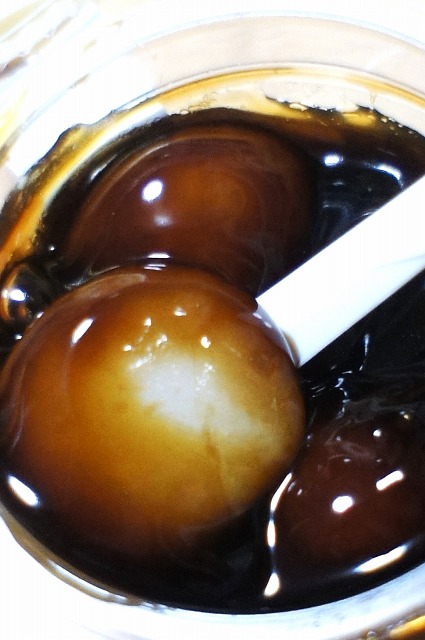 ぽろん、っと可愛らしいお団子がたっぷりの黒蜜に浸かっています。
