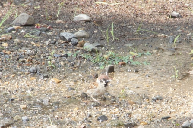 この日は暑かったので、雀さんがお庭で水浴びしてましたよ。