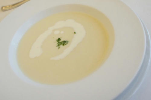 前菜はサラダかスープのどちらかを選ぶことが出来るのですが、私はスープを選んでジャガイモの冷製スープ(ヴィシソワーズ)にしてみました。