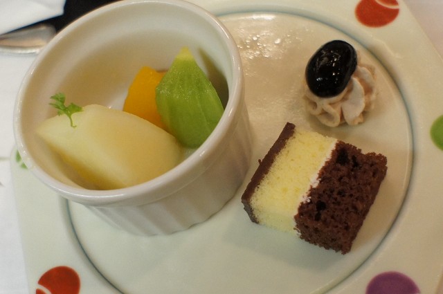 デザートはフルーツとプチケーキと黒豆。