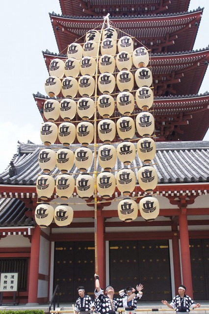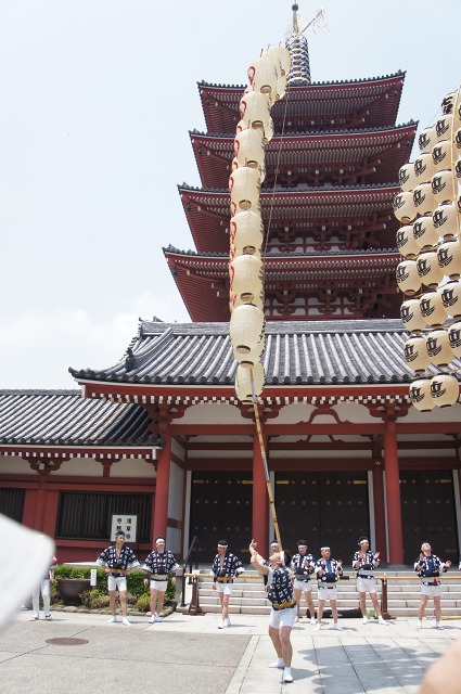 ああああああ!!五重塔の屋根に竿燈がぐしゃり。