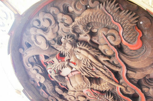 あの大きな提灯の下に潜ると、実はこんな素敵な彫刻が見れるんです。