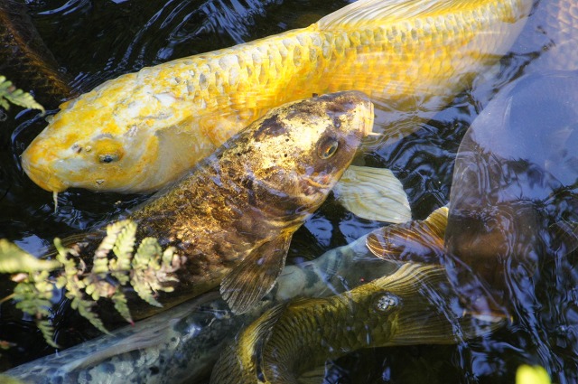 池には立派な鯉がわんさかと…
