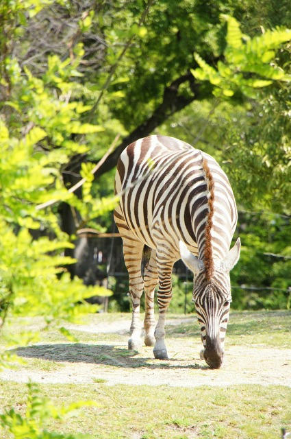 サバンナエリアでは、シマウマさんがお食事中。