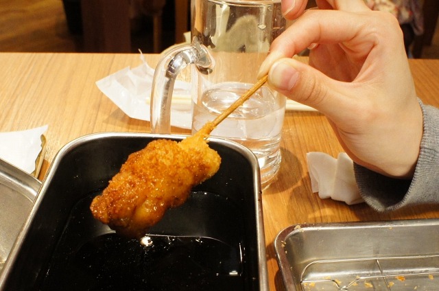 賑やかなお店がいっぱいあって、どうせなら名物の串カツを食べようと思って色々探していると…