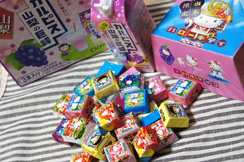 楽天トラベルの懸賞で、ハローキティーのチロルチョコと、巨峰味のカルピスが当たりました~ヽ(*´∀`)ノ