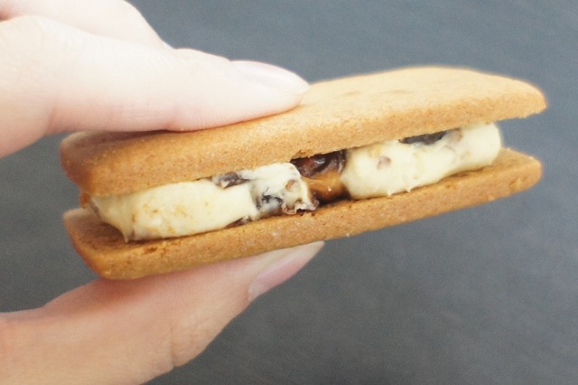 ビスケットの中に、バターたっぷりクリーム+レーズンが入ってます。