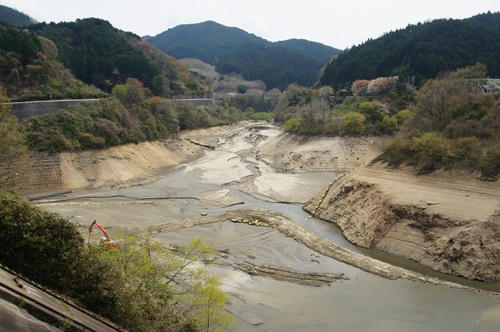 こっちはダム湖?の方。放流してるからか干上がってます。